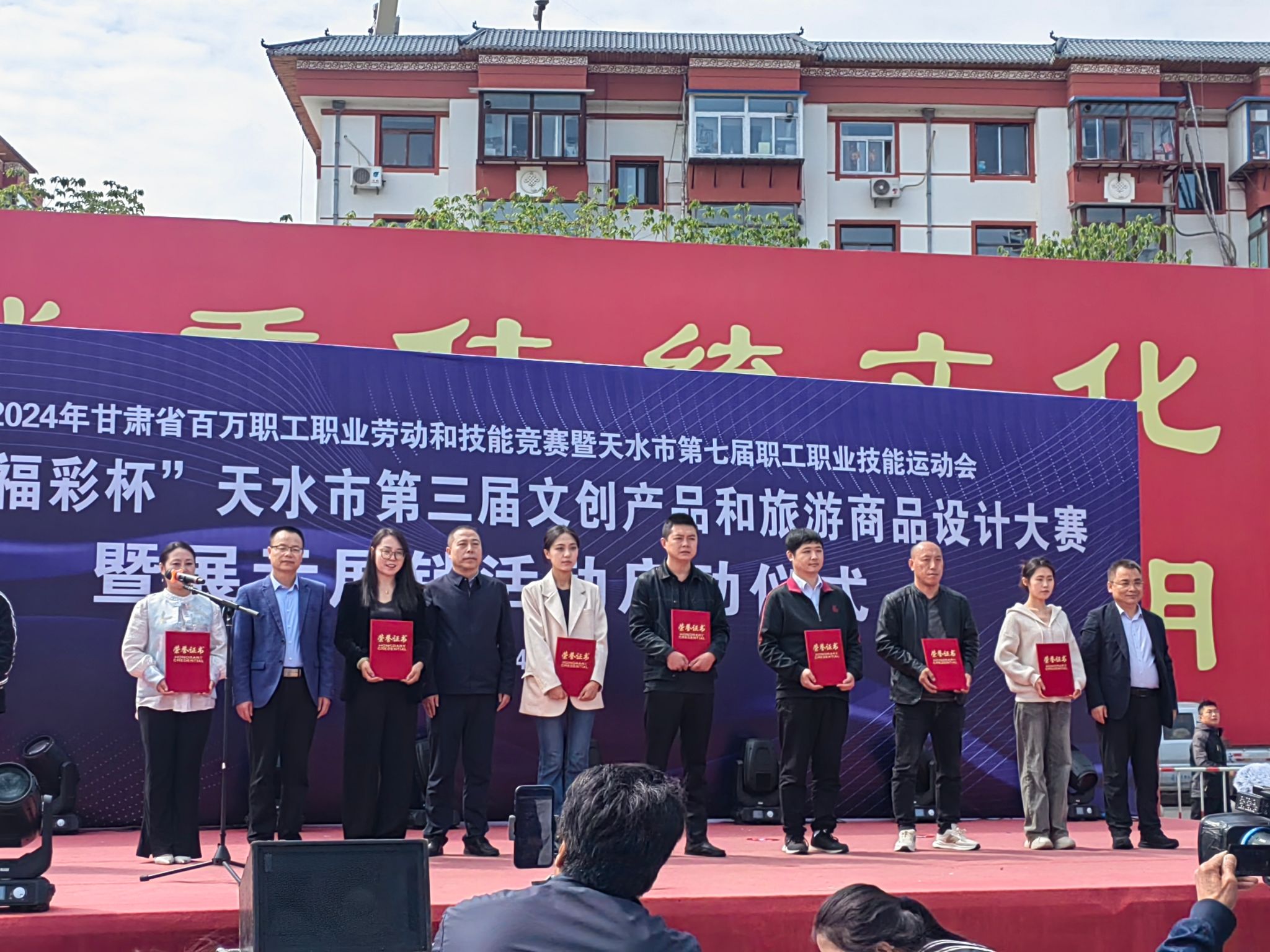 4月30日上午,“公益福彩杯”天水市第三届文创产品和旅游商品设计大赛颁奖暨展示展销活动启动仪式在伏羲广场举行。