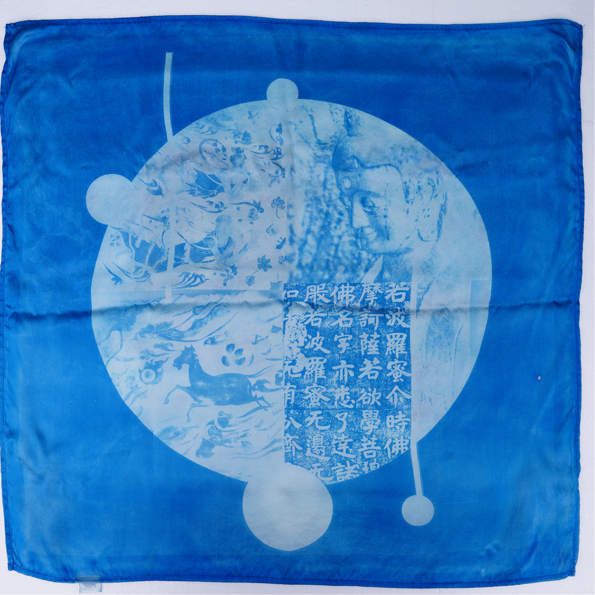 该作品由天水师范学院董露露报送。作品将麦积山壁画与传统蓝晒印染工艺相结合,以新的方式将壁画呈现出来,它在设计上采用了现代设计方式将壁画元素重新进行创新设计,更符合大众即追求美观又追求文化价值的观念。丝巾不仅仅是一种饰品,更是一种文化的展现,将壁画与它结合能够更好地宣传和发扬麦积山石窟文化。