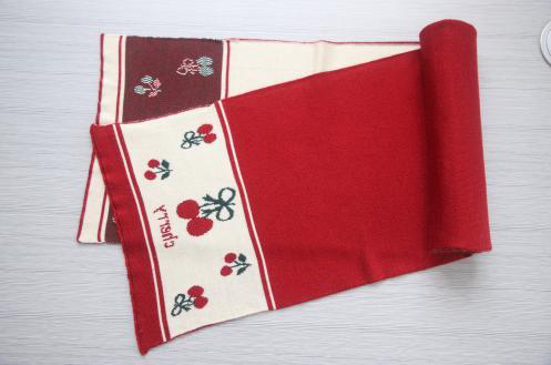 该作品由甘肃春风纺织集团有限责任公司毛竞、魏兆文、潘思怡、马瑶报送。作品设计题材选自“天水大樱桃”,作为天水独特的农产品,其品质享誉全国。设计图案将天水大樱桃艺术处理,搭配红绿两色,整体设计符合年轻人的审美。天水大樱桃作为设计元素,既传承和弘扬天水地区的文化特色,又为天水助农推广贡献一份力量。该产品采用牛奶丝原料,将图案和针织提花工艺相结合,全自动电脑横机织就而成。抑菌亲肤,佩戴舒适美观,价格实惠,包装精美,携带方便,是馈赠亲朋好友的天水地方特色礼品。
