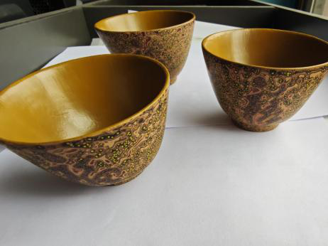 该作品由天水雕漆文化博览园师昱报送。传承了八千多年的大漆工艺,源于天然漆树,被誉为“国漆”,是一种纯天然的、健康的涂料。大漆与木胎的结合,创造出了别具一格的艺术品。此作品灵感来自于天水伏羲文化,伏羲二字采用谐音,变为“福”“禧”,含义是幸福吉庆,长寿、如意、福星高照。茶杯的外壁采用大漆工艺—撒漆粉,呈现出丰富的色彩和纹理,不仅美化了器物,还赋予了其深厚的文化内涵,更为使用者带来了舒适的触感。大漆茶杯不仅是对古老大漆工艺的传承,更是现代审美与传统技艺的完美结合。