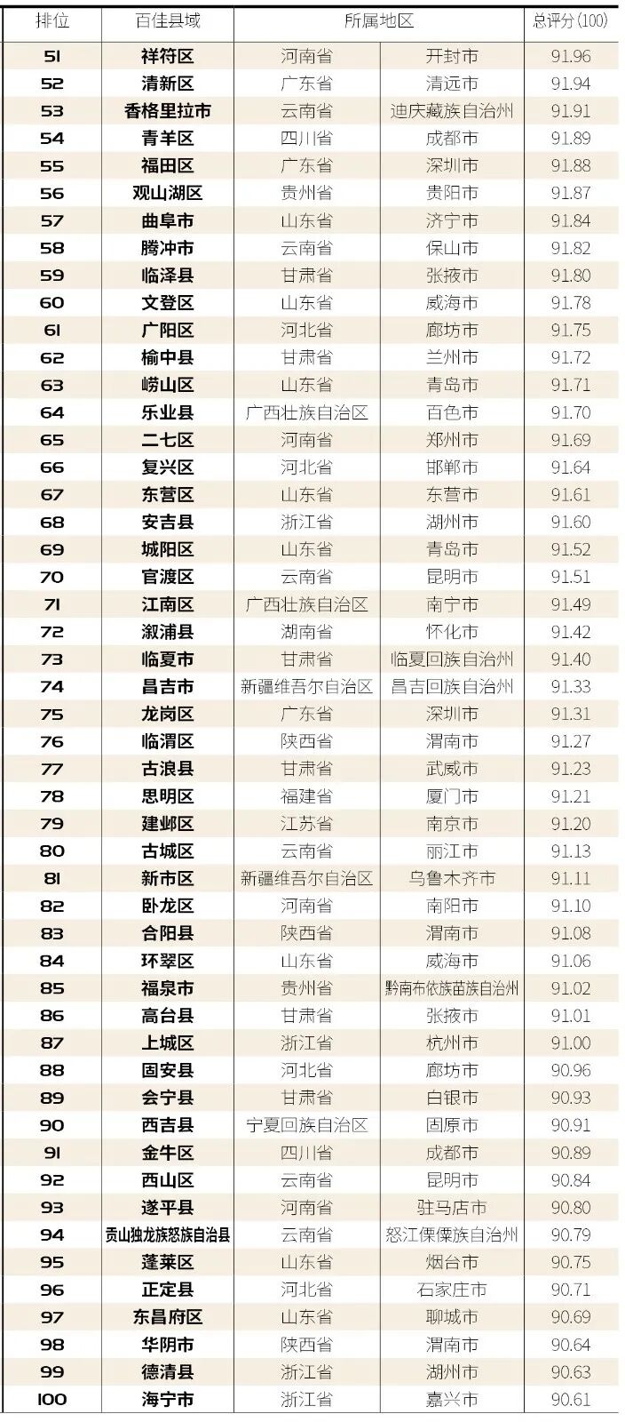 “2020中国最具幸福感百佳县市”的发布,实现全域覆盖排榜:除直辖市所含区与港澳台地区以外的全国县域行政单位为2760个,因2020年初的新冠疫情因素影响,湖北省所属103个县域行政单位不参与本年度榜单排位,故本年度榜单实际涵盖全国2657个县域行政单位进行排位。