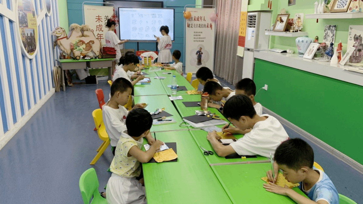在课程互动环节,宣教员引导青少年根据马家塬出土的金银饰片造型,用金、银色铝箔纸创作饰片造型,发挥天马行空的想象力,将对马家塬金银车饰件的理解转换成了造型可爱的工艺品,让两千多年前的西戎车饰在现代少年的传承创造中再现神采。