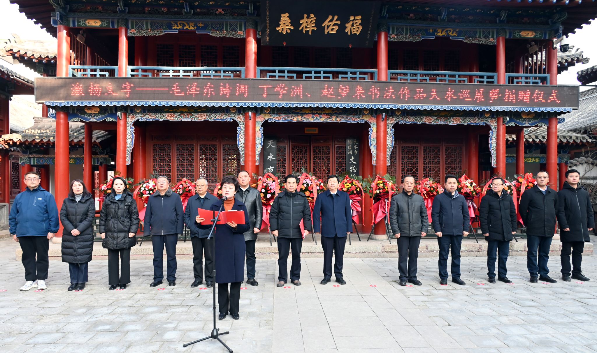 12月19日,为纪念毛泽东同志诞辰130周年,由甘肃省文化和旅游厅、甘肃省文学艺术界联合会、甘肃画院、甘肃省书法家协会主办,中共天水市委宣传部、天水市文化和旅游局、天水市文学艺术界联合会承办,天水市书法家协会、天水市文化馆等单位协办的“激扬文字——毛泽东诗词”丁学洲、赵望来书法作品天水巡展暨作品捐赠仪式在天水市文化馆隆重举行。