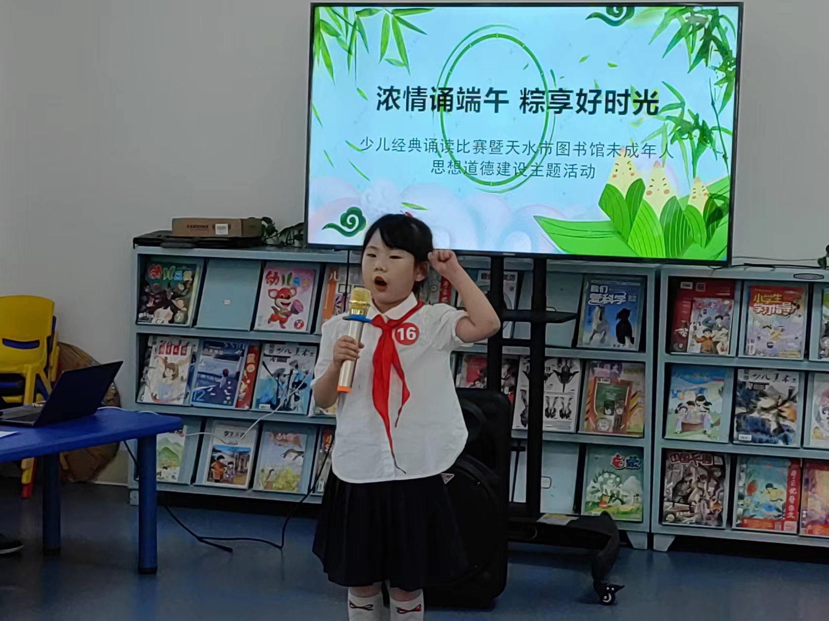 为传承和弘扬中华优秀传统文化,丰富少年儿童读者的节日文化生活,天水市图书馆于6月9日成功举办"浓情诵端午,粽享好时光"少儿经典诵读比赛,吸引了众多少儿读者踊跃参与。