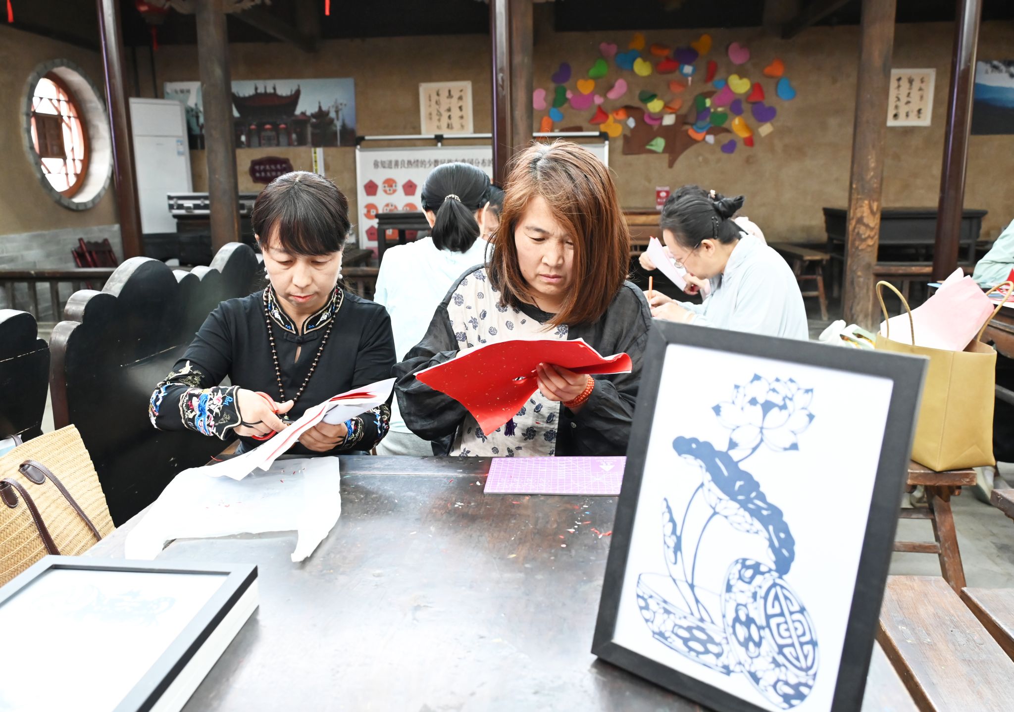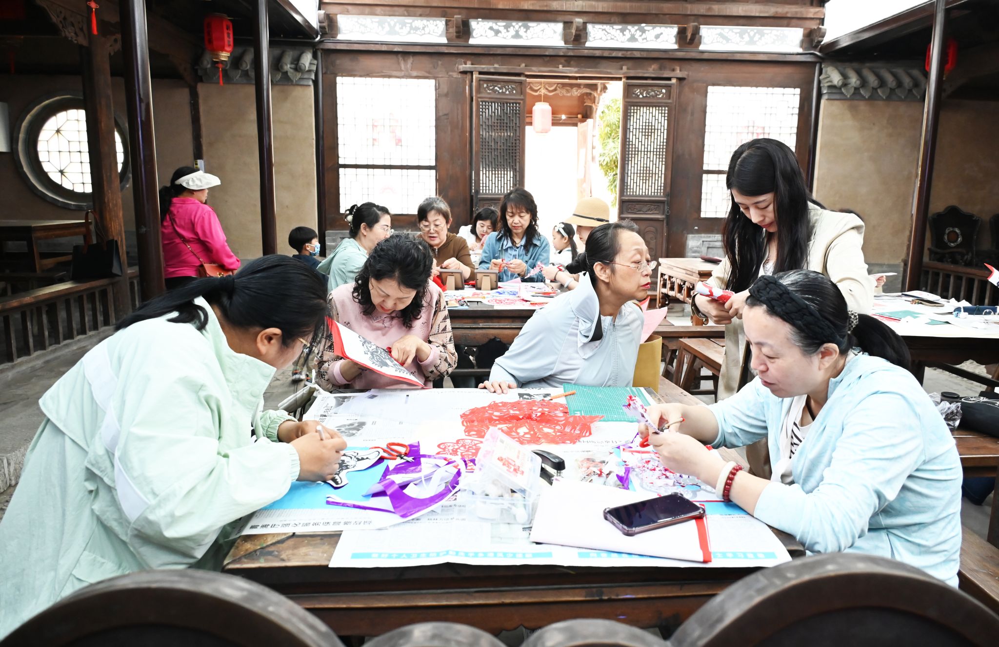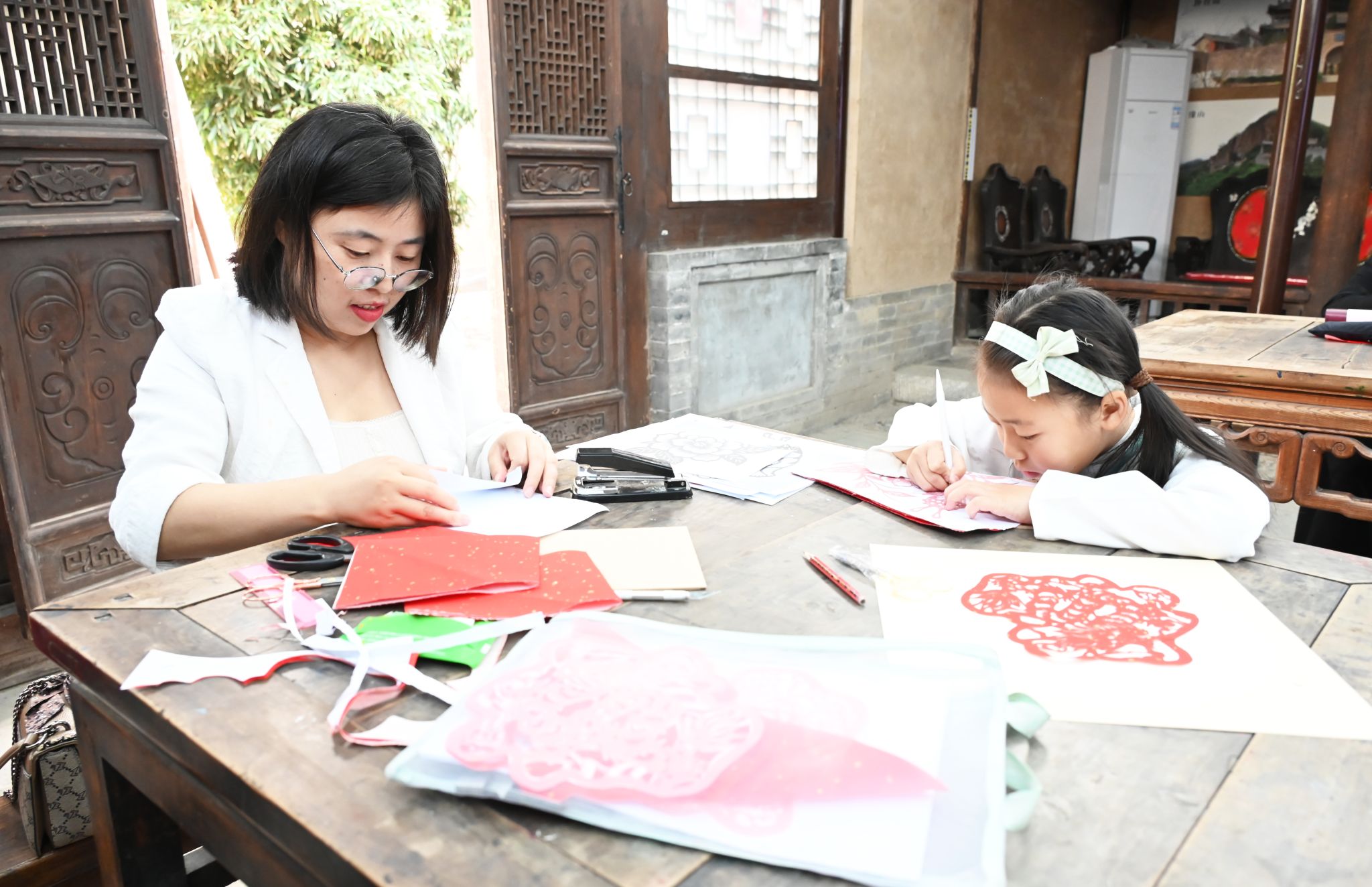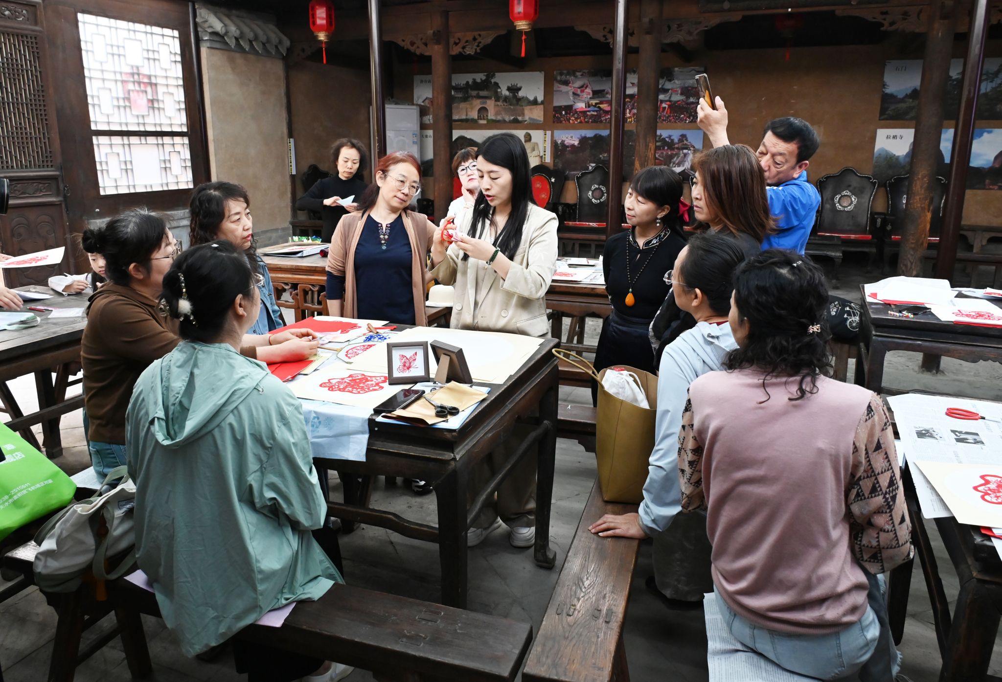 在互动体验环节,游客们纷纷在老师的指导下亲手尝试剪纸艺术。小朋友们剪出了憨态可掬的小动物,而老年游客则更偏爱传统的吉祥纹样。来自西安的游客李女士,手举着自己刚刚完成的“福”字剪纸,兴奋地说道:“在这百年老宅里学习剪纸,仿佛穿越了时空,这种‘沉浸式旅游’体验真是太棒了!”