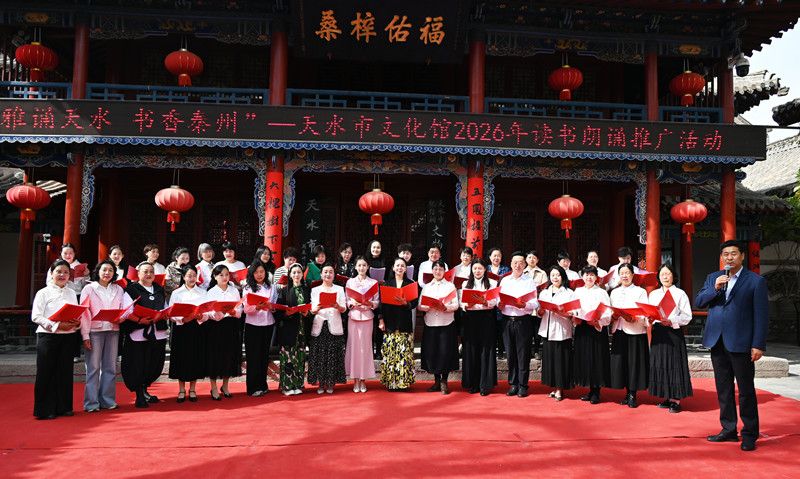 4月22日,为深化全民阅读,营造“爱读书、好读书、读好书”的浓厚氛围,在31个“世界读书日”来临之际,天水市文化馆在纪信祠五凤楼前举办“雅诵润天水·书香沁秦州”2026年读书朗诵推广活动,以声声诵读、款款分享,让书香浸润秦州大地,让阅读之美滋养每一颗心灵。