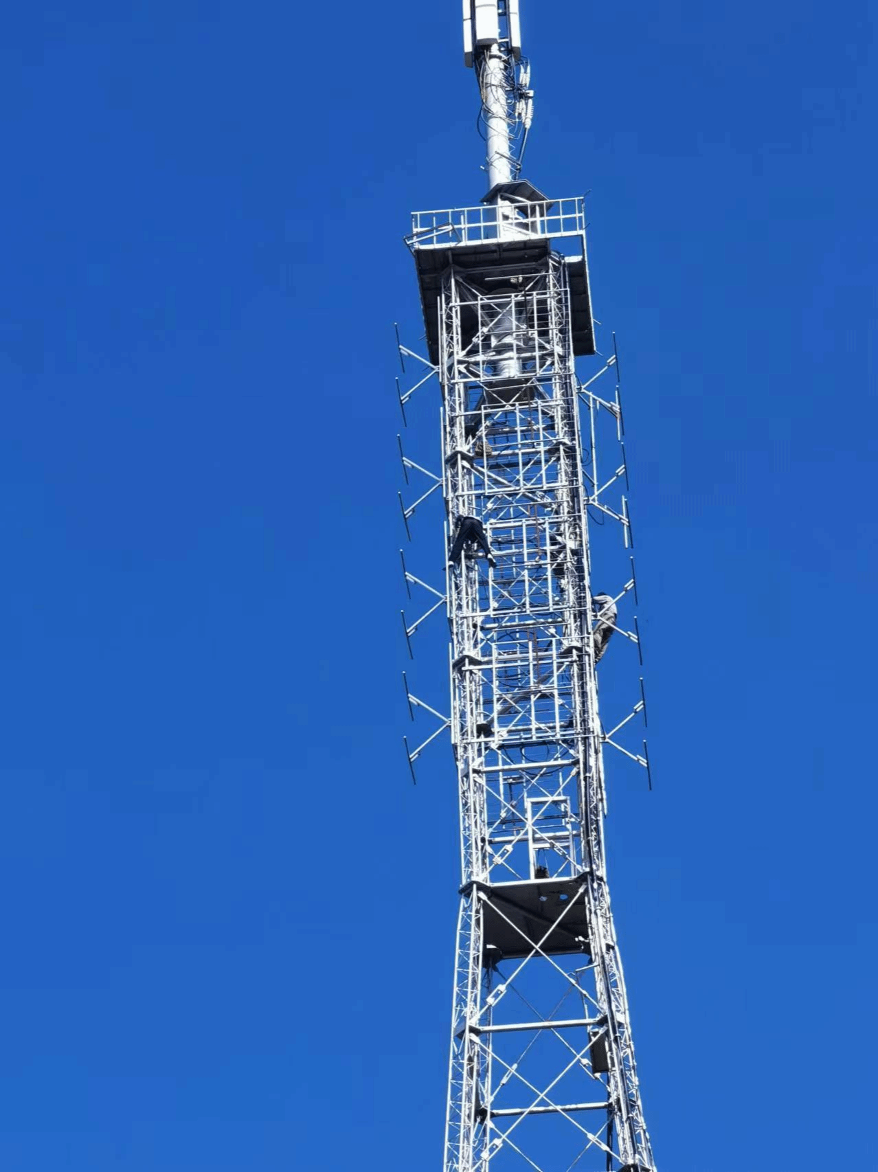 为提高广播电视信号覆盖质量,消除安全播出隐患,保障地面数字电视节目安全播出。8月9日至13日,天水电视调频转播台邀请铁塔维护专业人员对广播电视发射塔进行了维护。