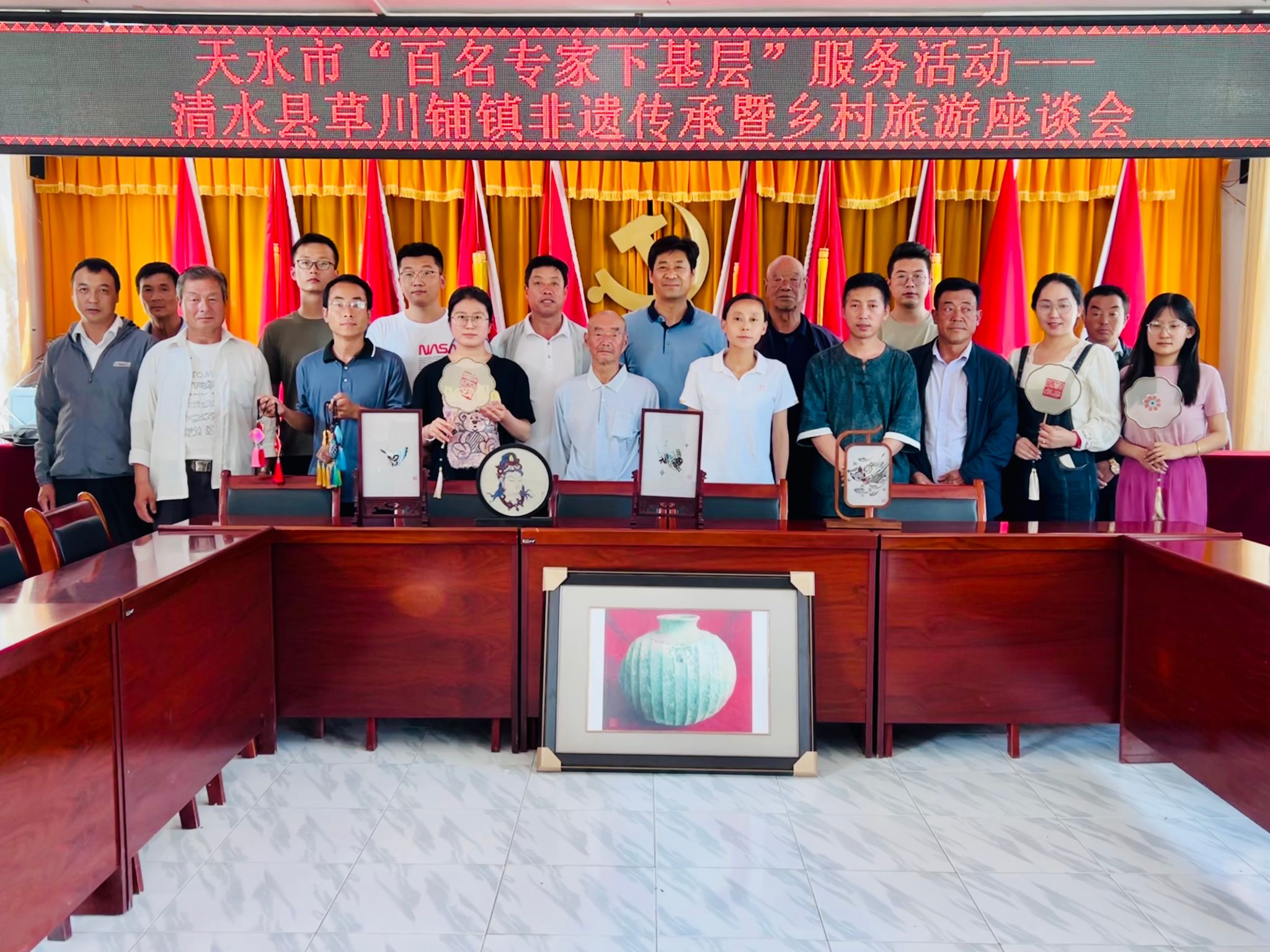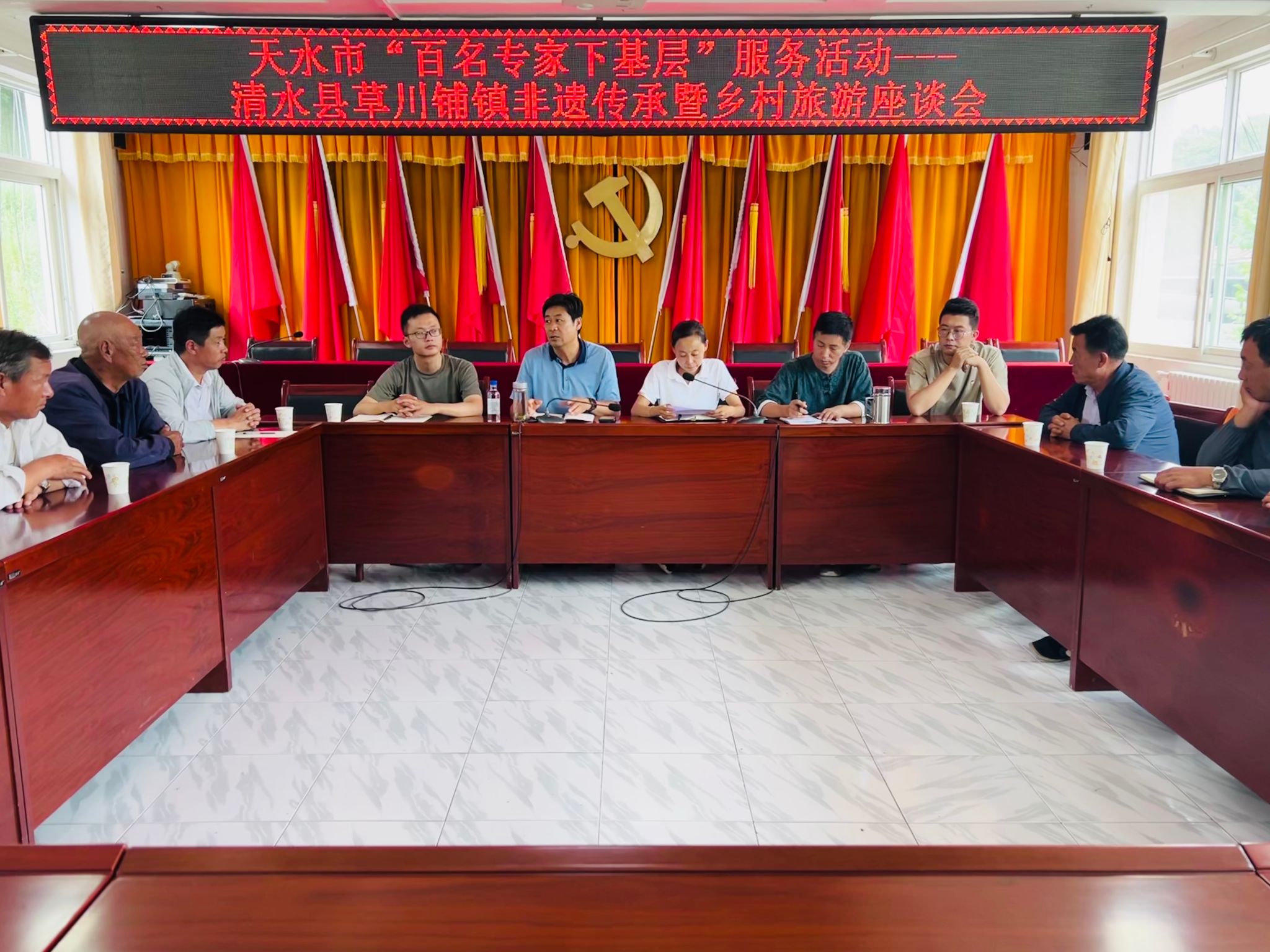 现场考察结束后,镇党委书记申国凤主持召开了“百名专家人才下基层助推乡村振兴”清水县草川铺镇非遗传承暨乡村旅游调研座谈会,专家组、镇干部、村支书、乡贤、非遗传承人等共计20余人参加了座谈会。