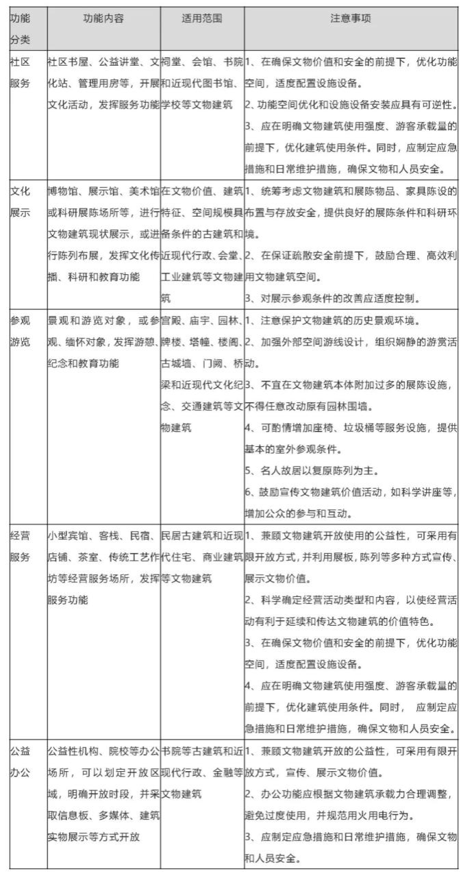 (一)应合理控制开放使用范围、内容和强度,修缮过程中应充分考虑开放使用,避免二次装修、空间改造、设施设备装配影响文物安全。