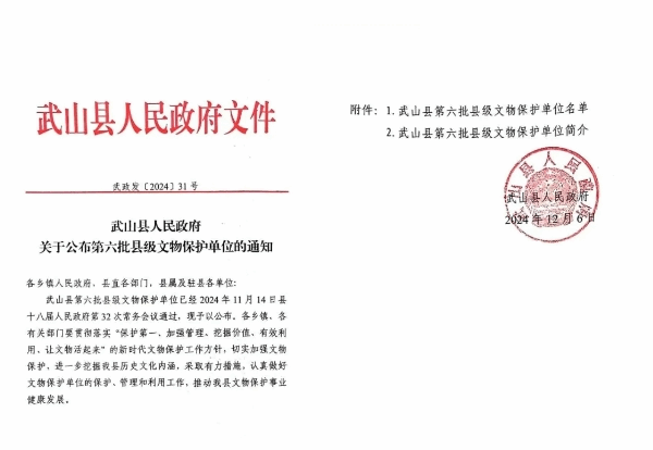 武山县第六批县级文物保护单位的核定公布,是我县第四次全国文物普查阶段性重要成果,使得我县又一批文化遗存纳入法制化和规范化管理范畴。接下来,县文物部门会同相关乡镇,认真做好第六批县级文物保护单位的保护、管理和利用工作,强化文物安全监管,不断提高文物价值阐释和展示传播水平,进一步夯实文物保护基础。