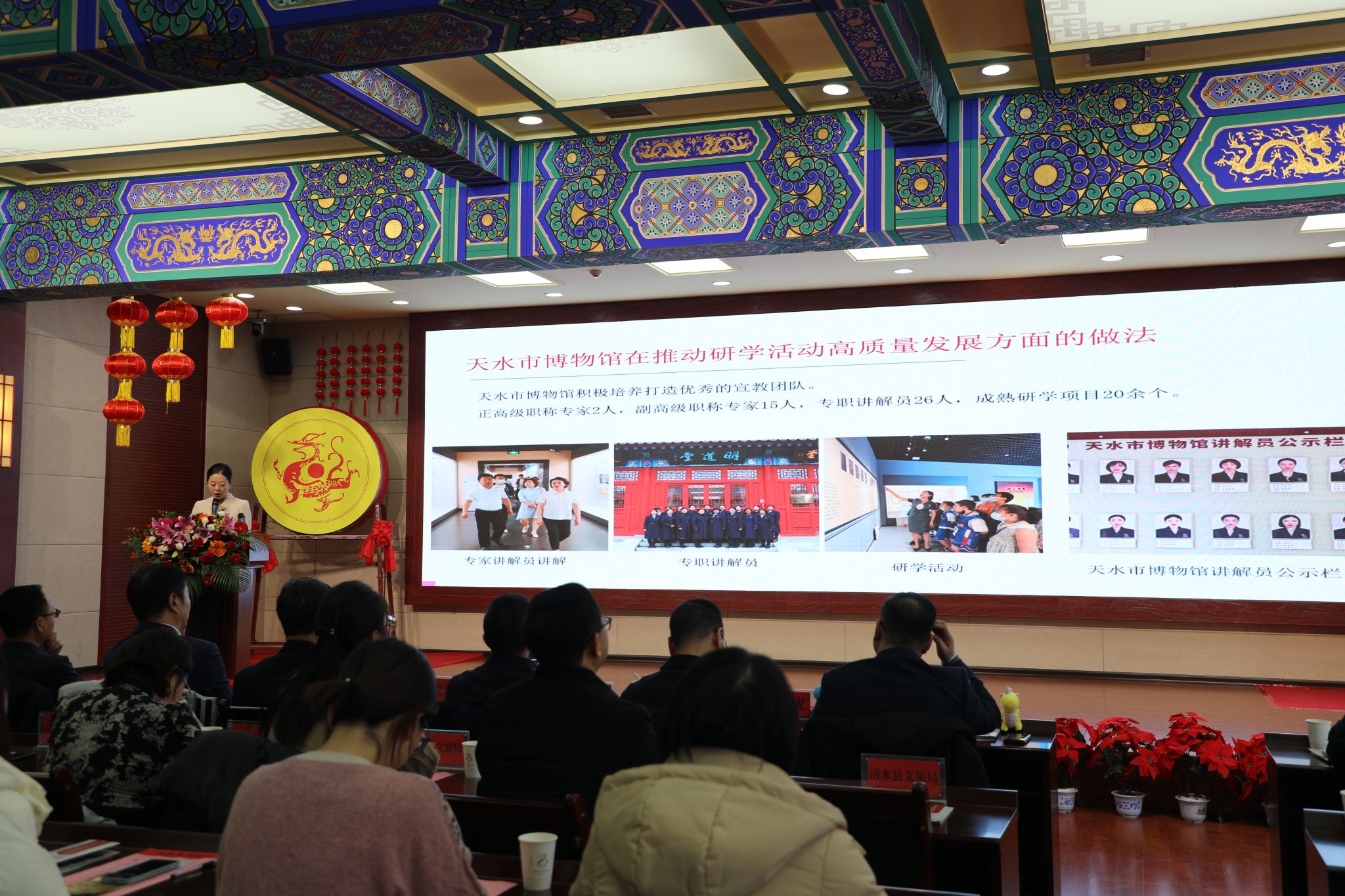 为贯彻落实省文化和旅游厅及省文物局“龙腾盛世 博动陇原——博物馆里过大年”有关精神,丰富人民群众精神文化生活,营造欢乐祥和的春节氛围,充分发挥博物馆资源优势,助推校外教育和“双减”工作。1月30日下午,天水市文化和旅游局发布了以“龙年逛龙城 研学天水行”为主题的2024年冬春研学旅行活动发布会,该发布会由天水市博物馆承办并在会上介绍了本馆精品研学课程。