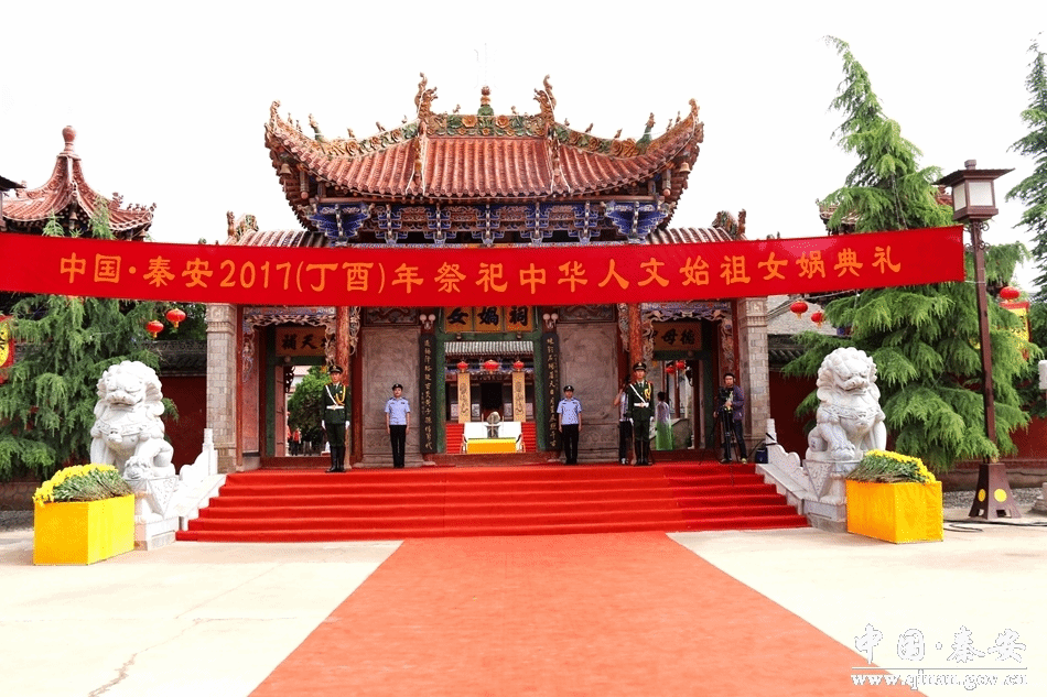 【秦安娲皇宫】位于秦安县陇城镇,相传为女娲出生之地。主体建筑为仿古式的女娲大殿,殿内的女娲像生动再现了女娲炼石补天、抟土造人的情景。每年正月十五,陇城镇举办盛大的女娲庙会,祭拜女娲氏。