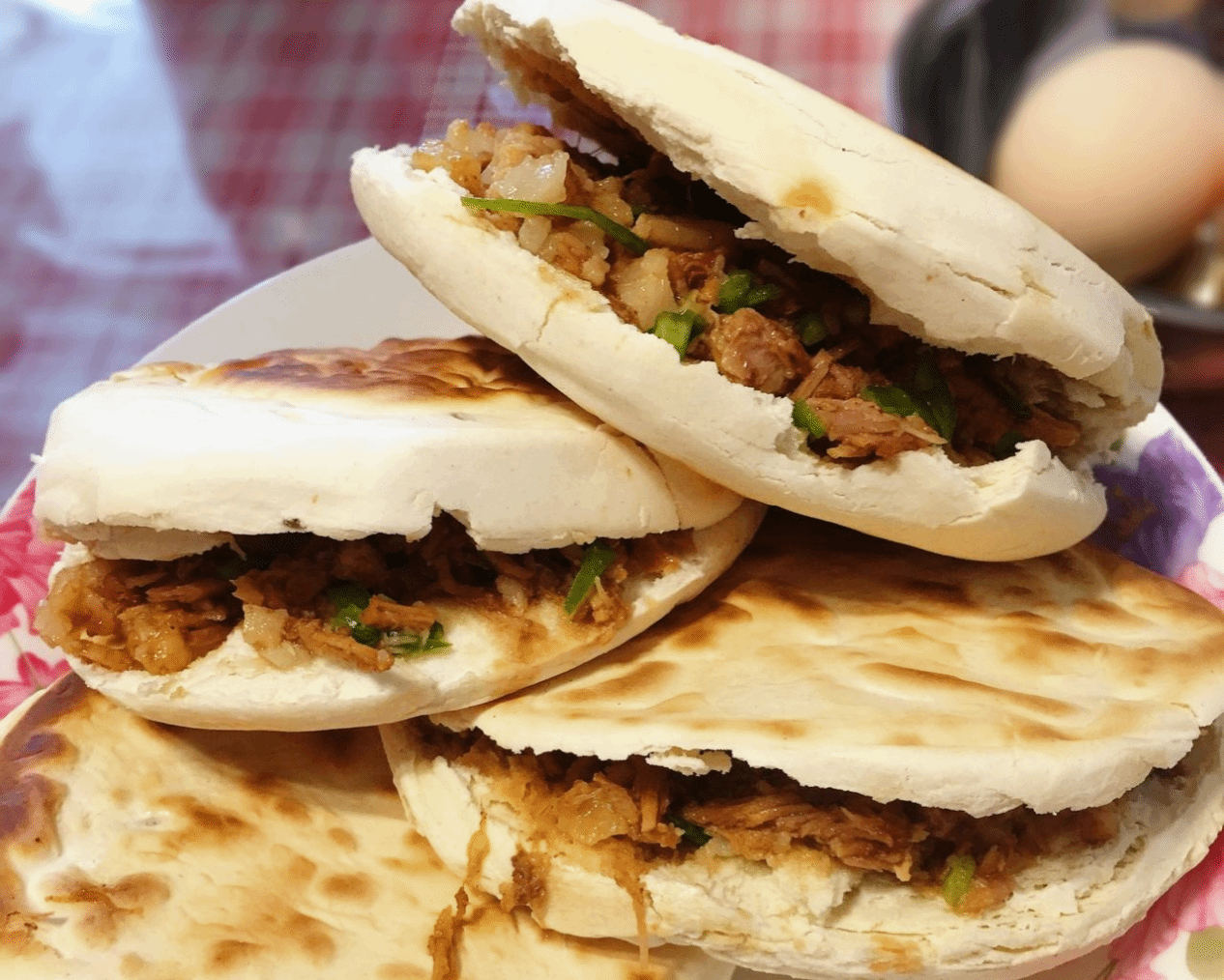 【天水肉夹馍】天水肉夹馍是用软馍夹软肉的一种快餐。软馍选择精制面粉,发酵成起面以独特的手工蒸烤成,既软又柔。肉为大卤肉,以肋条肉为最佳。将肉切成片状夹入馍内,灌注少许卤汤,柔软可口,肥而不腻,味美醇香,老少皆宜。肉夹馍的卤肉配料采用多种原料,其中的汤则为陈年老汤,秘方从不外泄。肉夹馍在甘谷又叫卷子肉。