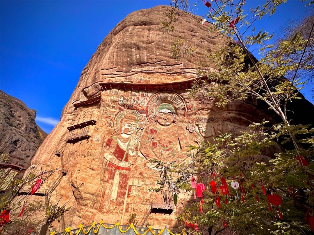 【水帘洞景区】位于武山县城东北约25公里的钟楼山峡谷,现存有水帘洞、拉梢寺、千佛洞、显圣池四个石窟单元。水帘洞石窟群于十六国时期的后秦开龛造像,自古以来就是祈福圣地,拉梢寺世界第一摩崖浮雕大佛是北周尉迟迥大将军为国家和百姓祈福的历史见证。
