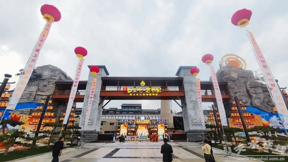 白鹿仓·万物昇陇上文化旅游度假区毗邻麦积山石窟,以天水五大历史文化为依托,着力打造集创意美食、沉浸演艺、休闲度假、互动体验等于一体,包括丝路风情街、特色美食街、大型行进式国风演艺、非遗工坊、飞天游乐场、黄河情亲子乐园、山地温泉民宿、高标准国际酒店、低空旅游营地等产品的文旅创新综合体。