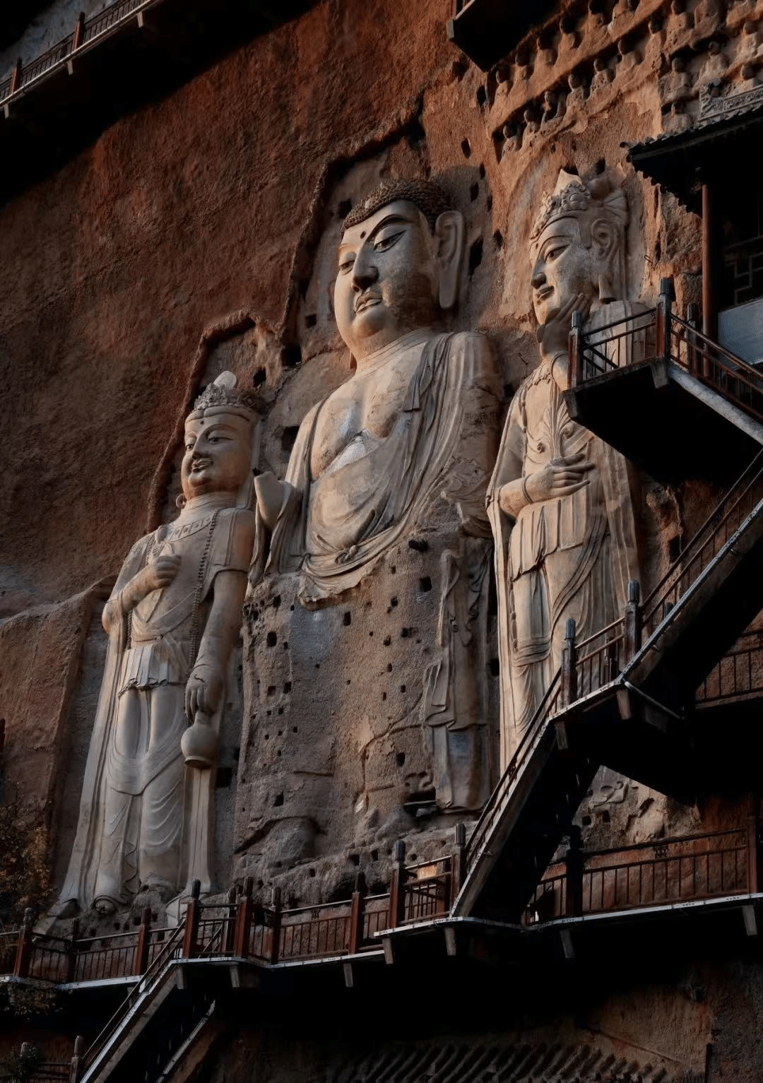 【麦积山石窟】位于国家5A级景区麦积山风景区内,距城区约30公里,因形如农家麦垛而得名。始凿于十六国后秦,经北魏、西魏不断开凿,现存大小窟龛221个,各类造像3938件,10632身,壁画1000余平方米,生动展现了当时的雕塑、绘画、建筑水平和艺术文化造诣,被誉为“东方雕塑陈列馆”,为中国“四大石窟”之一,入列世界文化遗产名录。