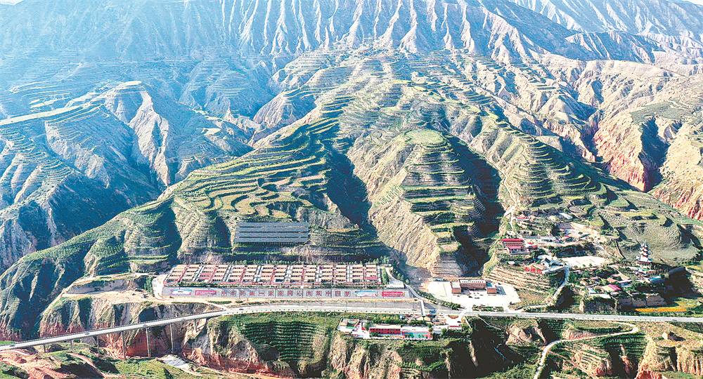图8:安居梦圆,山乡巨变。87.36万户农村危房全部改造,49.9万贫困人口易地扶贫搬迁任务全面完成,建成美丽乡村示范村900个,乡村旅游示范村225个。图为甘肃省临夏回族自治州东乡族自治县高山乡布楞沟村新貌。