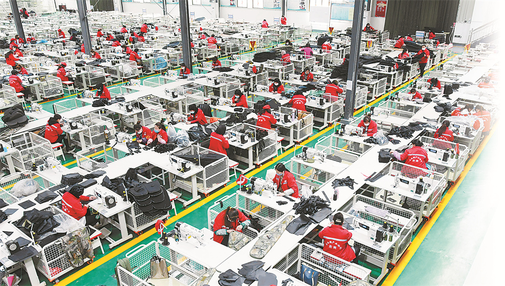 背景资料:图片中是顺然包袋有限公司在临夏回族自治州和政县投资建设的吉美包袋扶贫工厂的生产场景。顺然包袋有限公司于2018年积极响应厦门市东西部协作扶贫号召,在和政县建设吉美包袋扶贫车间。2019年,该公司在和政县循环经济园区购地30亩,投资5000万元,建成了建筑面积1.5万平方米包袋生产基地,吸纳劳动力279人(其中建档立卡贫困劳动力211人)。这是临夏回族自治州首个东部民企购地建厂项目,在该项目的示范带动下,多家东部企业在和政循环园区集中建厂,产业集群加速形成,带动了鞋服、箱包等轻工业的快速发展,实现了群众在家门口就业,带动了贫困人口就业增收。