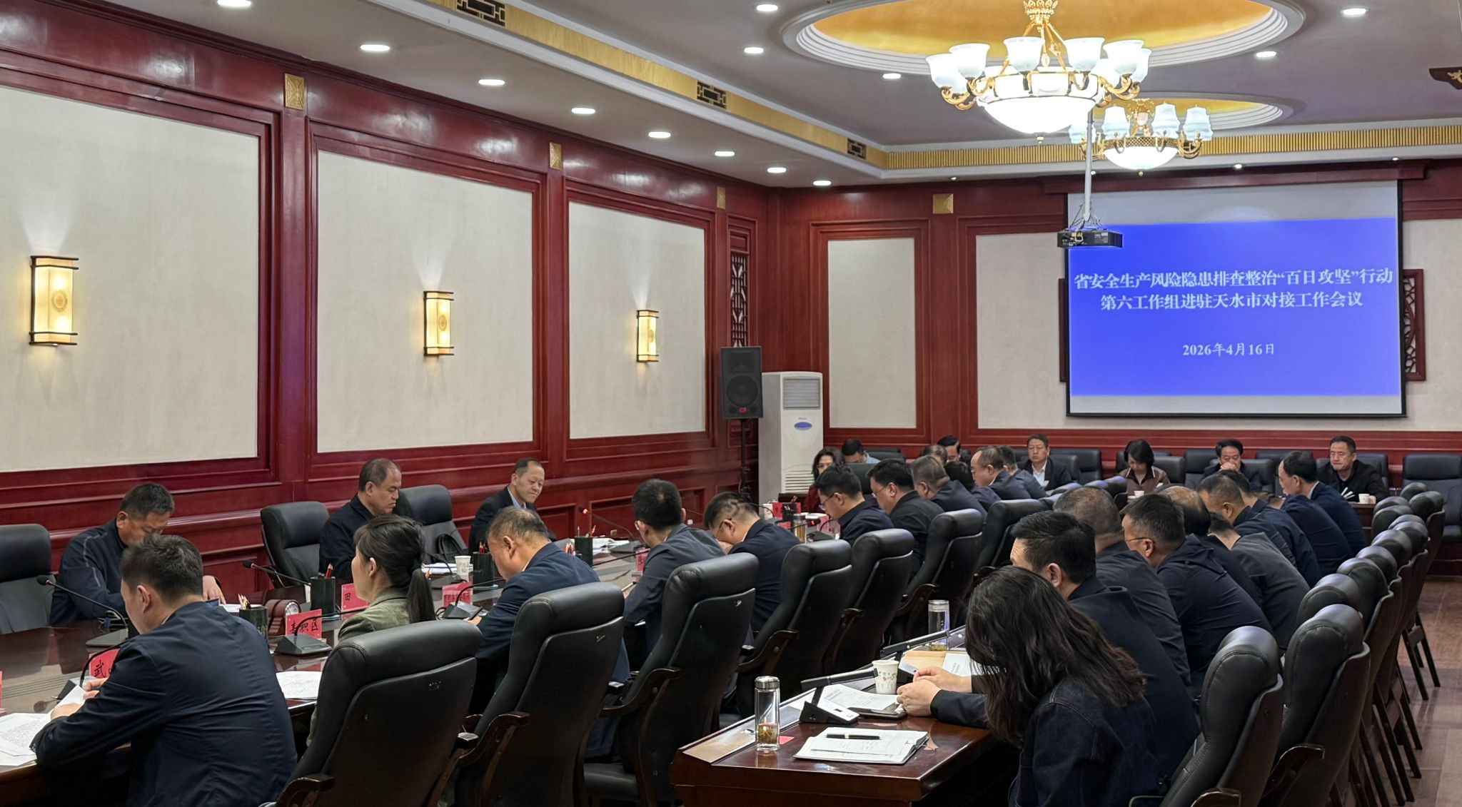 4月16日,全省安全生产风险隐患排查整治“百日攻坚”行动第六工作组进驻天水市并召开对接会议。省安全生产“百日攻坚”第六工作组组长、省文化和旅游厅党组成员、副厅长史云海出席会议并讲话,市委副书记、常务副市长张晓强代表市委、市政府作表态发言。第六工作组副组长及有关成员,各县区、市直相关部门负责同志参加会议。