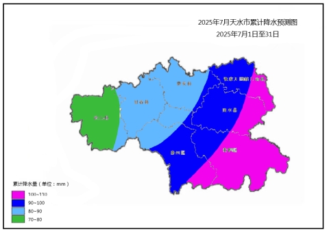 图1 2025年第三季度天水市累计降水量预测图(单位:毫米)
